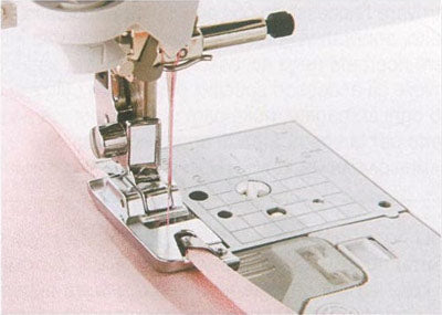This foot is designed to automatically fold and sew a hem in lightweight fabrics. It makes a narrow rolled hem easily. (Snap-on foot)