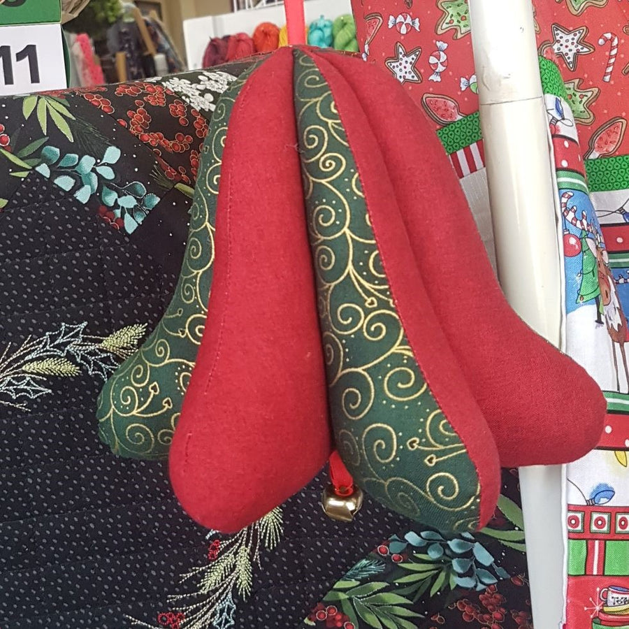 These sewn and stuffed 3-D bells make a wonderful addition to any Christmas décor. Finished size is 16cm high and 16cm wide at the base.