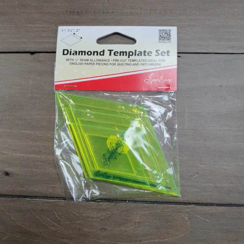 Diamond template set with 1/4″ seam allowance. Pre cut templates ideal for English paper piecing, quilting and patchwork