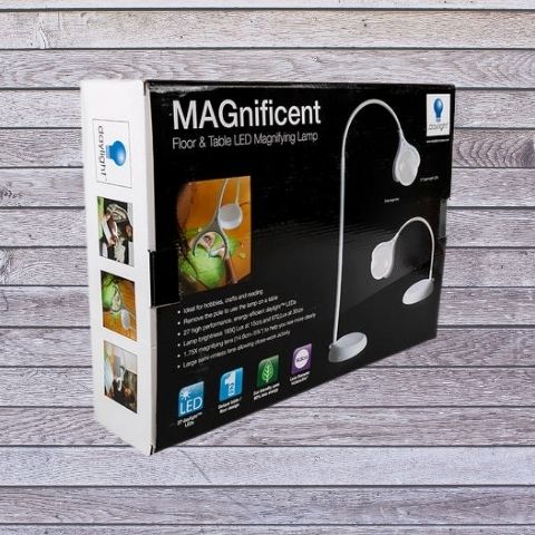 The MAGnificent Lamp is ideal for all types of detailed work. This lamp is cleverly designed to be used as both a floor lamp (with 2 different height options) as well as a table lamp. The Daylight™ LEDs provide high contrast and accurate colour matching, making it easier and less tiring to read, work and see detail clearly. LEDs use very little energy. The large, semi-rimless 1.75X magnifying lens allows uninterrupted viewing of close up work.