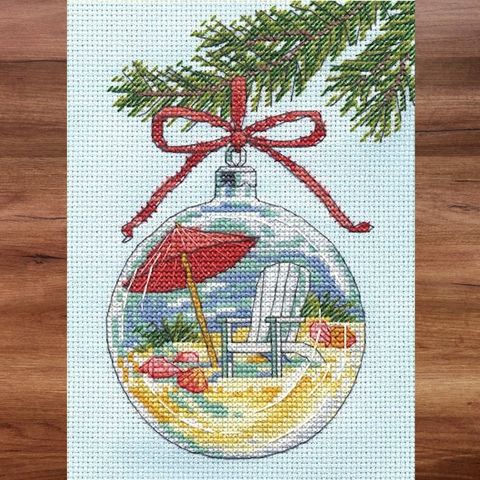 Includes presorted thread, 14 count light blue Aida, needle, instructions.