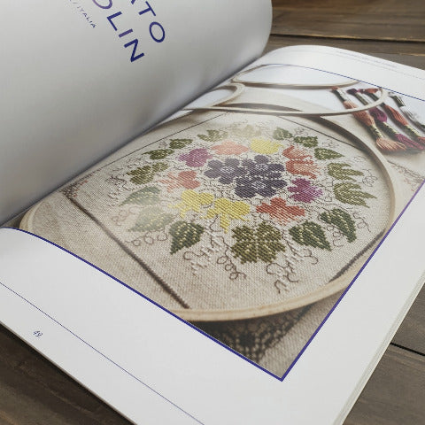 This DMC full-sized booklet with 12 lovely designs, one each from 12 well known designers from around the world. Flowers and gardens are well-represented, as well as birds, bees, alphabets, sewing room and even a river boat!