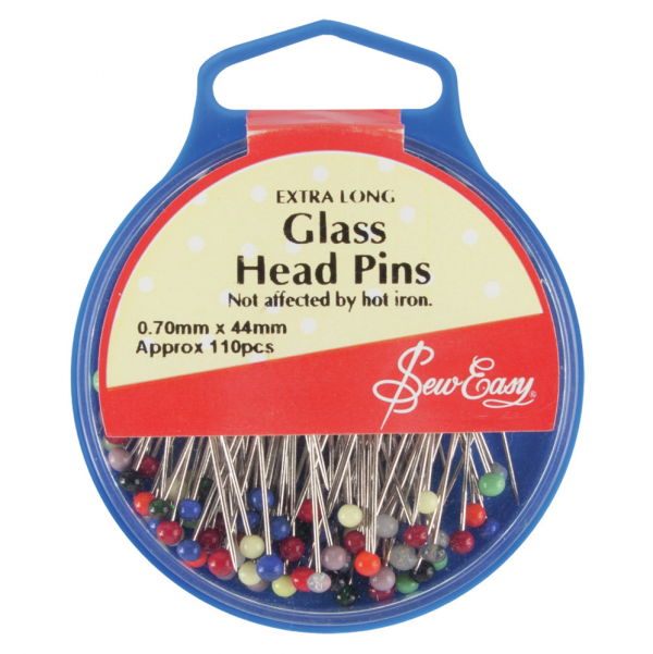 • Nickel plated steel pins, with colourful glass heads which will not melt when ironed over.