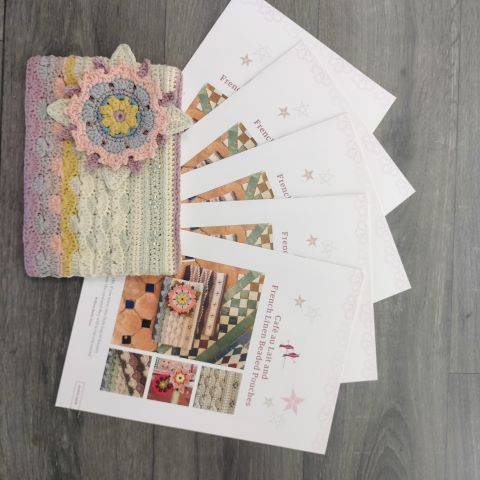 This project is a great stash buster, with very small amounts of yarn used. The Café au Lait version of the pouch uses 5 shades of organic cotton yarn, and the French Linen version uses 2 main shades and very small amounts of the remaining colours.