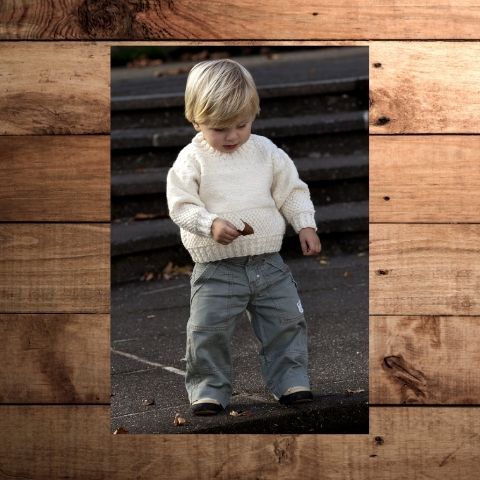 A multi textured stripe sweater with a cable rib, a simple cosy knit for boys and girls.