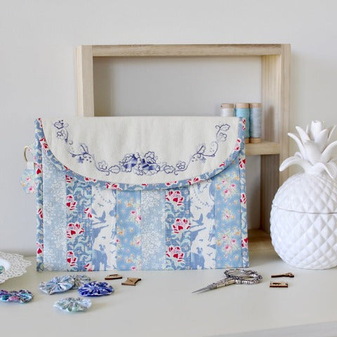 Keep your technology in style, with this gorgeous patchwork pouch. Featuring a beautiful hand embroidered floral design, and delicate ‘strip patchwork’ details, the Summer Rose Pouch is designed to perfectly fit an iPad Air or Air2. With easy to follow instructions, you will enjoy stitching a stylish new cover for your device. You can also use it as handy place to store your journal, sewing supplies and pattern notes too.