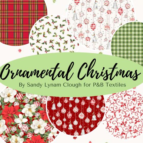 This elegant Christmas collection is the newest from artist, Sandy Lynam Clough. Each of the lovely ornaments is accented with lots of detail. Rich, holiday colors lend themselves to using these fabrics for many types of projects including gift bags and table décor.