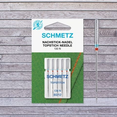 With a very long eye (2mm) in comparison the universal and embroidery needles.