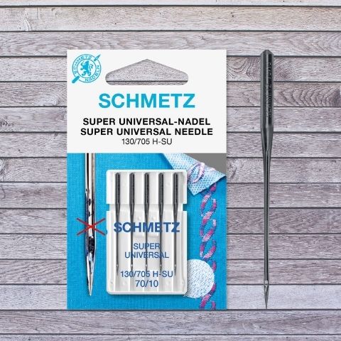 Gone are the days of adhesive residue sticking to the eye of the needle and slowing up your work. Schmetz have introduced the Super Universal Non Stick Needle.