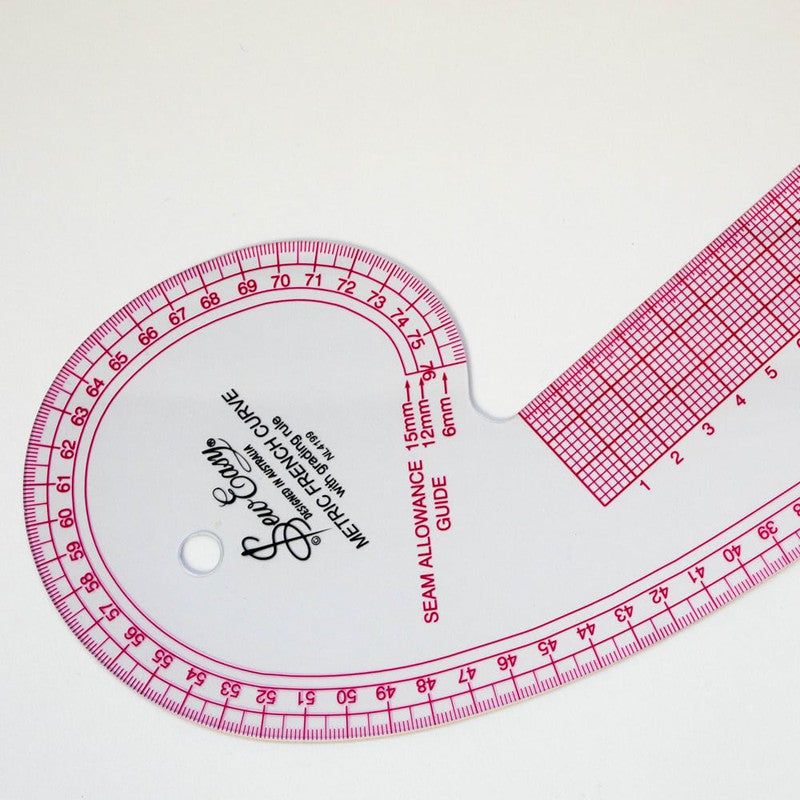 Flexible rule with combination of curves for: neckline, armhole, sleeve cap, hipline, waistline and hemline