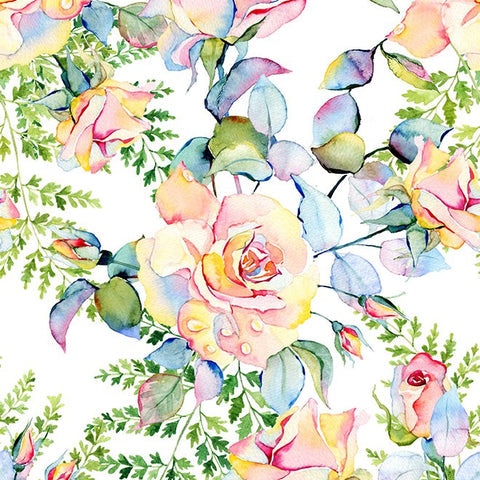 A simply beautiful collection of watercolour flowers, leaves and butterflies, with a gorgeous garden border of roses, ferns and leaves.