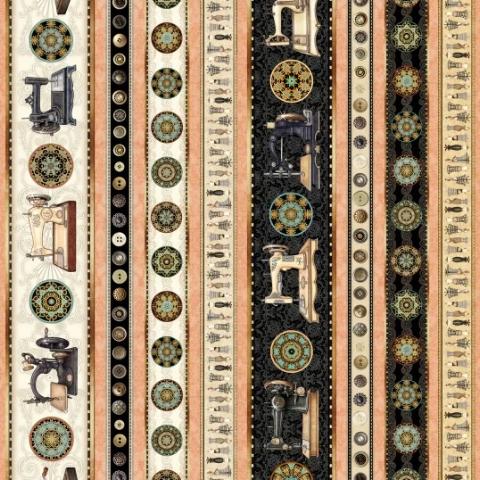 A collection that will speak to all quilters, sewers, and creatives of all types. ©Dan Morris pays homage to our favorite hobby with this sewing collection of antique, retro motifs. Sewing machine picture patches, a decorative stripe, thimbles, pins, scissors, and more lead the way to gorgeous themed quilts and novelty accessories.