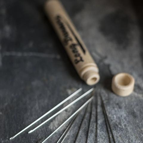 They are the perfect choice for darning your socks and also do a good job of more industrious mending projects. A mixture of sizes in a turned wooden case. Fits in any bag or pocket.