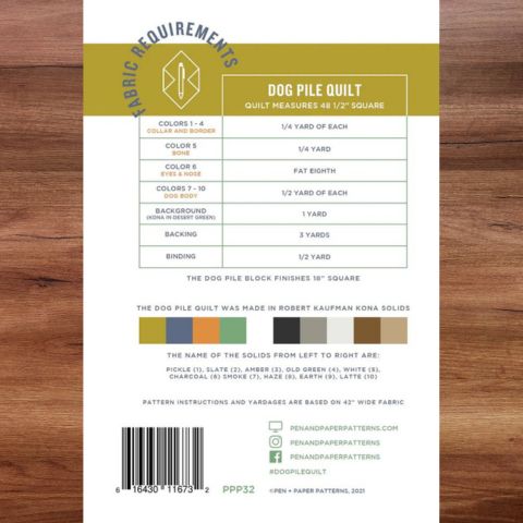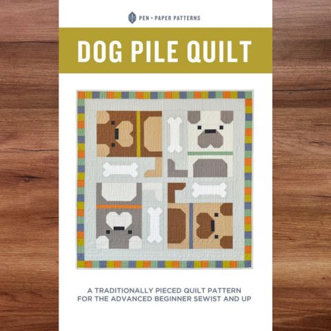 Dog Pile, the canine follow-up to the Kitten Around pattern, is a traditionally pieced quilt that measures 48 1/2" square.