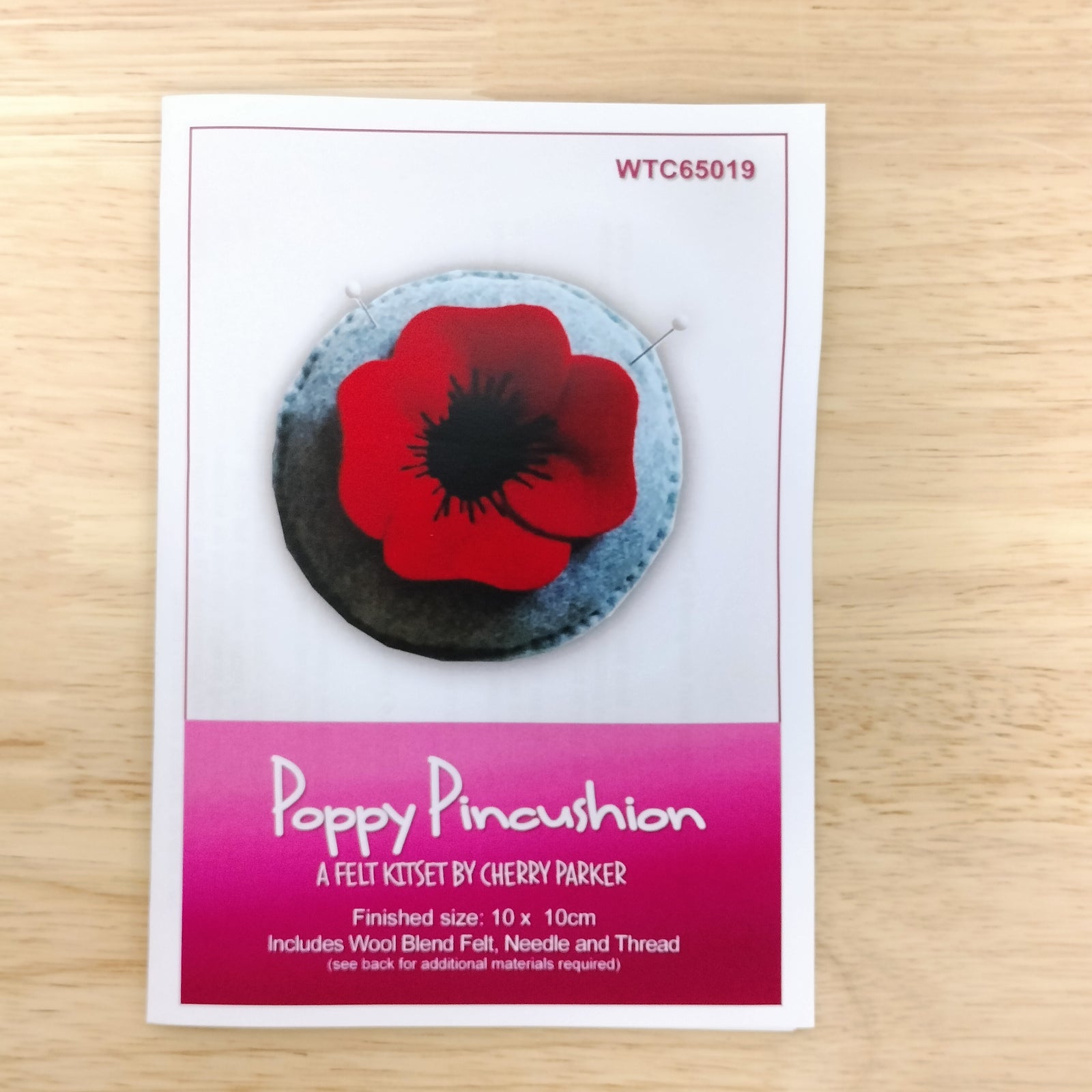 Designed by Cherry Parker, this Felt Kitset contains almost everything you need to produce a perfect, poppy pincushion.